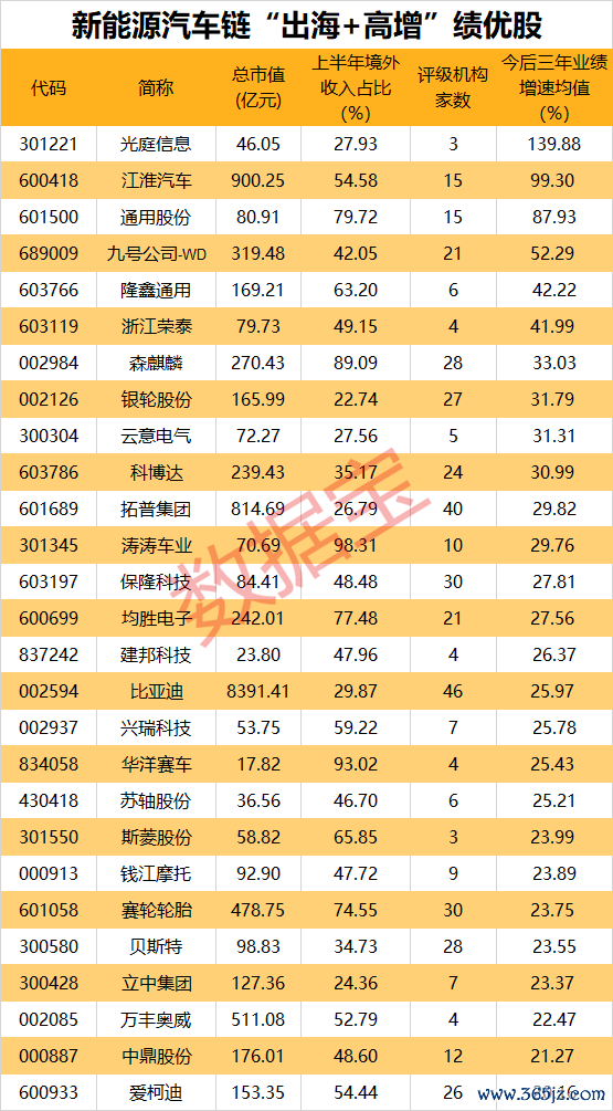 上述出海汽车股中,根据3家及以上机构一致预测,今后三年业绩增速均值超20%的个股有27只,其中光庭信息增速高达近140%,公司目前为小米汽车提供包括自动驾驶人机交互界面的相关功能测试服务。