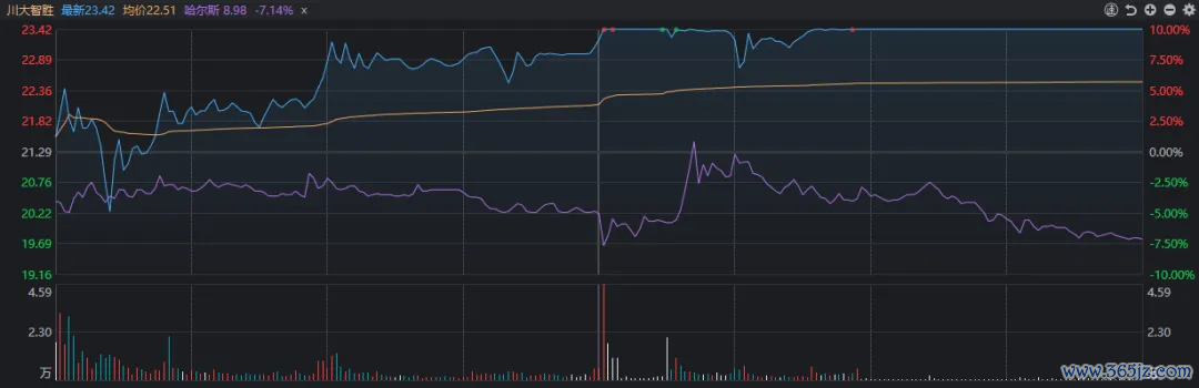 或许受此影响,上午就震荡走强、近期被调侃为“特朗普胜选概念股”的川大智胜,于13:01分触及涨停。