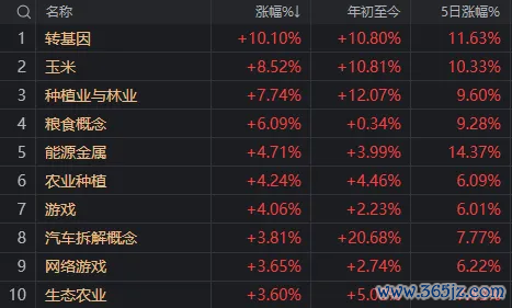 板块方面,早盘先走强的大金融整体冲高回落,取而代之且涨幅最大的是农业相关题材,如转基因、玉米、粮食概念等。